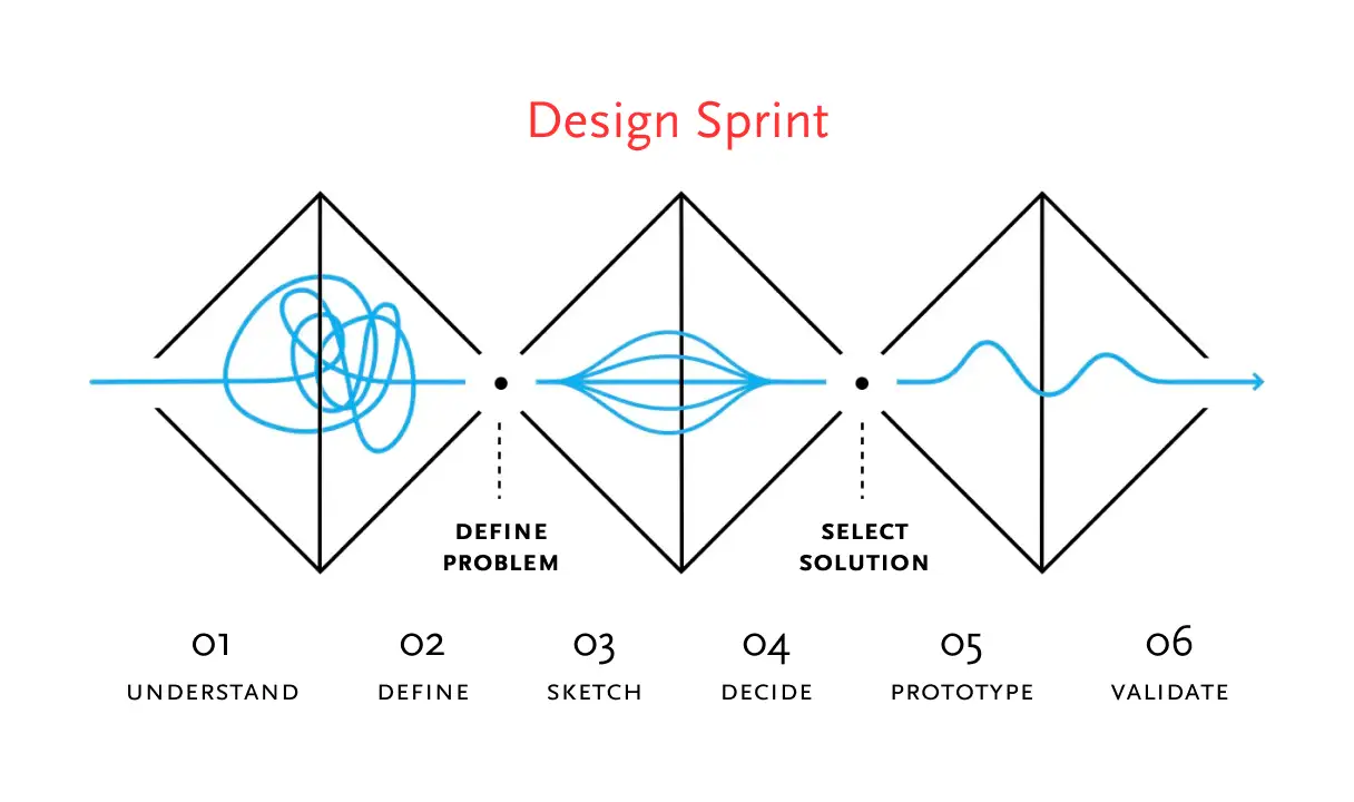 If Design Thinking is a marathon, Design Sprint is, well, a sprint 😉. And you have to finish it within a week without straying from the path. From Monday to Saturday, you get 6 days—one for each step of the framework.