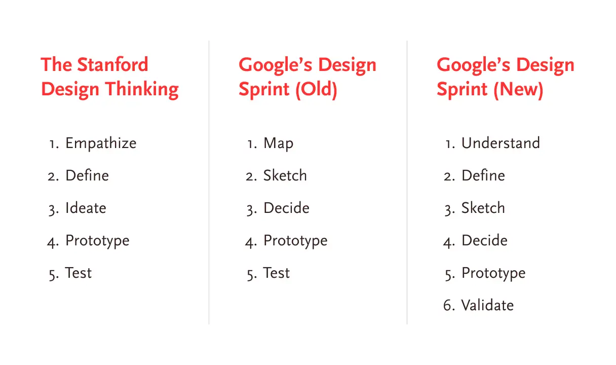 Let’s start with the Understand phase of the latest Google’s Design Sprint, compare it with other processes, and do this activity for all the phases to better understand them.