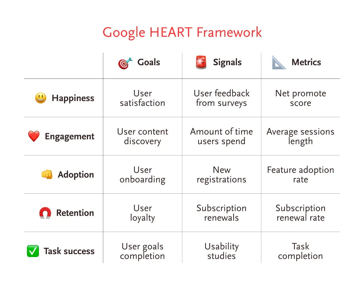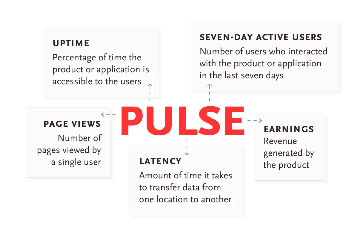 Here, you can use Google’s HEART framework along with PULSE metrics to define how you’ll measure your goal: